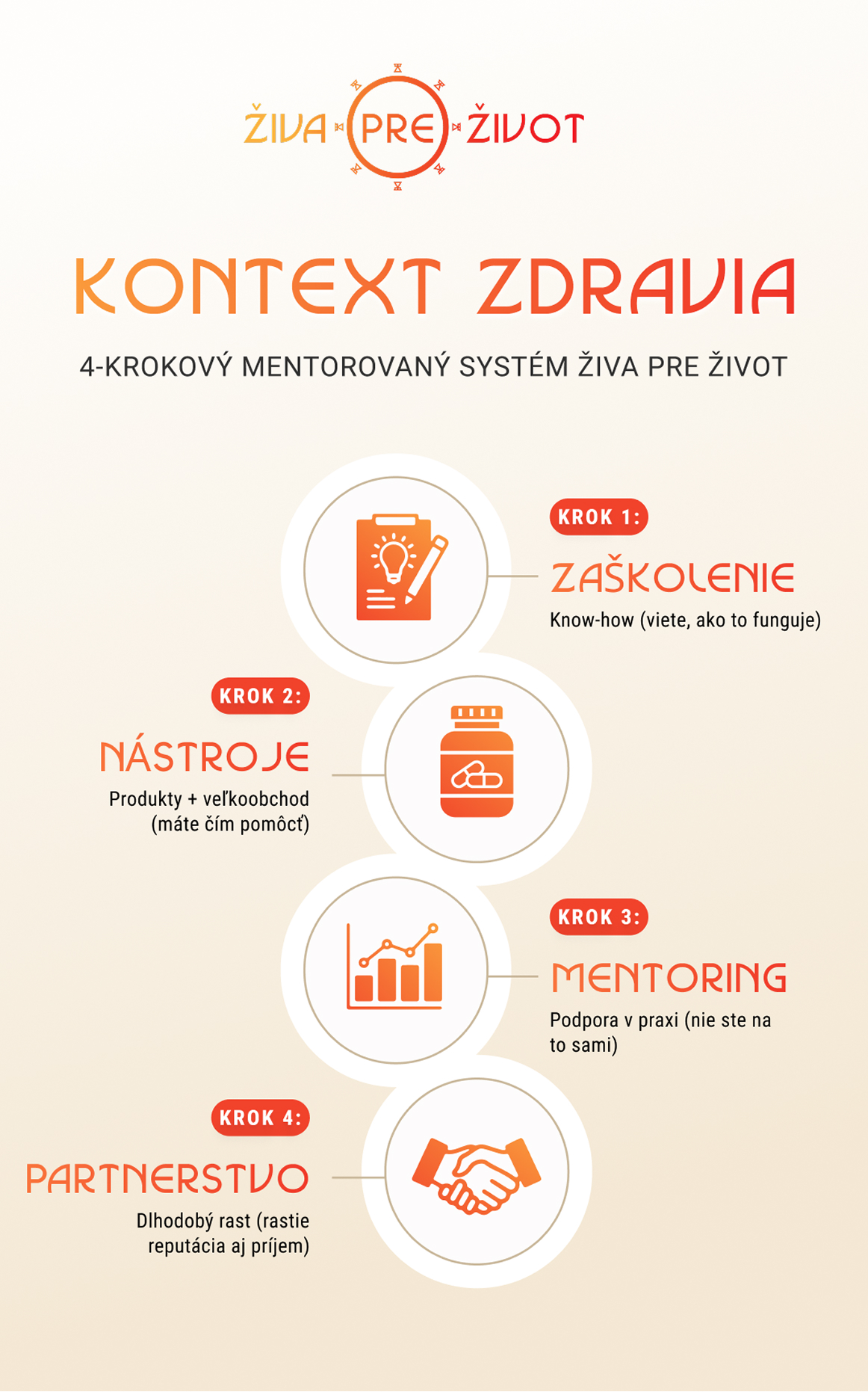 Živa pre život – kontext zdravia je partnerský odborný systém určený pre odborníkov v starostlivosti o zdravie, ktorí vedia, že potenciál ich práce je väčší, ak sa môžu oprieť o istotu v rozhodovaní a reálnu odbornú podporu, nie o ďalšie produkty, marketingové sľuby alebo neprehľadné informácie.